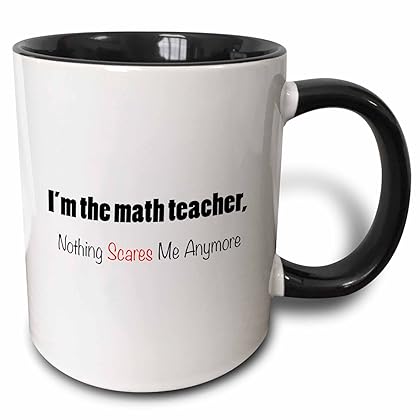 • The 3dRose mug_221075_4 I'm The Math Teacher, Nothing Scares Me Anymore Two Tone Black Mug, 11 oz, Black/White is a