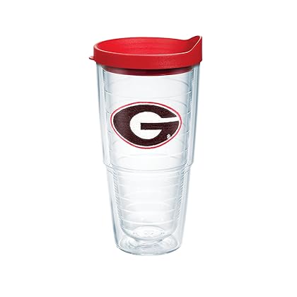 • The Tervis 1060862 Georgia University Emblem Individual Tumbler with Red lid, 24 oz, Clear is a