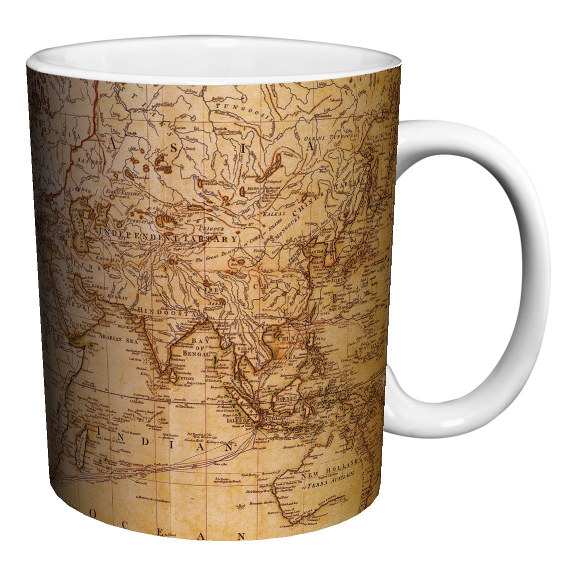 • The World Map Antique Vintage Old Style Decorative Educatiional Porcelain Gift Coffee (Tea, Cocoa) 11 Oz. Mug is a