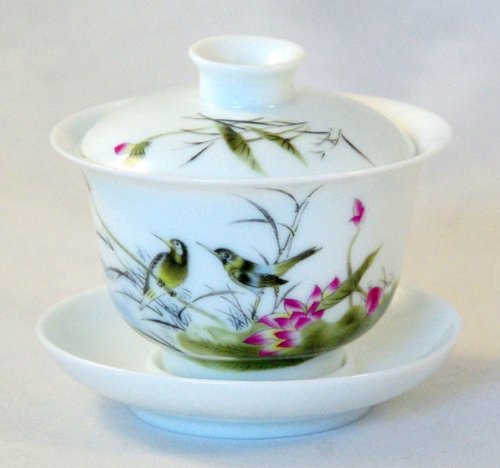 • The Bana Two Birds and a Blossom Chinese Gaiwan (Traditional Chinese Teaware Comprised of a Cup, Saucer and Lid) and Pu-erh Tea Sample is a