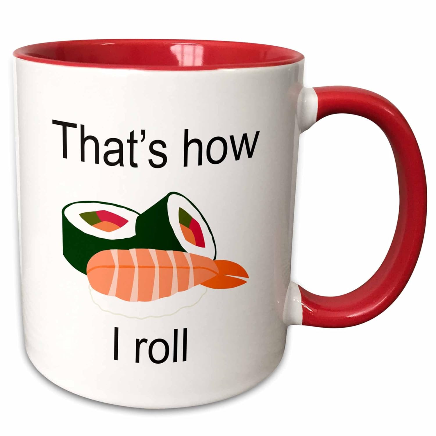 an essential choice for any warm beverage lover. The sturdy base, large handle and capacity, and thick, sturdy glass make it an excellent mug for everyday use. The classic shape is perfect for enjoying coffee, tea, or cocoa, and also makes a great gift. The versatile design lends itself not only to drinking but also to home decor. Whether you are sharing a cup of cocoa with a friend or growing your own herbs, Anchor Hocking’s Café Mug is sure to delight.the EvaDane - Funny Quotes - That’s how I roll - 11oz Two-Tone Red Mug (mug_157354_5) The origins of the Unemployed Philosophers Guild are shrouded in mystery. Some accounts trace the Guild's birth to Athens in the latter half of the 4th century BCE. Allegedly, several lesser philosophers grew weary of the endless Socratic dialogue endemic in their trade and turned to crafting household implements and playthings. (Hence the assertions that Socrates quaffed his hemlock poison from a Guild-designed chalice, though vigorous debate surrounds the question of whether it was a "disappearing" chalice.)Others argue that the UPG dates from the High Middle Ages, when the Philosophers Guild entered the world of commerce by selling bawdy pamphlets to pilgrims facing long lines for the restroom. Business boomed until 1211 when Pope Innocent III condemned the publications. Not surprisingly, this led to increased sales, even as half our membership was burned at the stake.EvaDane - Funny Quotes - That’s how I roll - 11oz Two-Tone Red Mug (mug_157354_5) is best for youSize:11-oz Two-Tone Red Mug That’s how I roll Mug is available in both 11 oz and 15 oz. Why drink out of an ordinary mug when a custom printed mug is so much cooler? This ceramic mug is lead free, microwave safe and FDA approved. Image is printed on both sides. Hand washing is recommended.