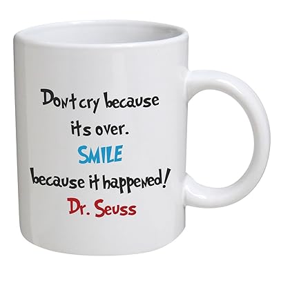 an essential choice for any warm beverage lover. The sturdy base, large handle and capacity, and thick, sturdy glass make it an excellent mug for everyday use. The classic shape is perfect for enjoying coffee, tea, or cocoa, and also makes a great gift. The versatile design lends itself not only to drinking but also to home decor. Whether you are sharing a cup of cocoa with a friend or growing your own herbs, Anchor Hocking’s CafĂ© Mug is sure to delight.the Funny Mug 11OZ "Don't cry because it's over, smile because it happened" Dr. Seuss, Inspirational novelty and gift, dad, by Yates And Franco The origins of the Unemployed Philosophers Guild are shrouded in mystery. Some accounts trace the Guild's birth to Athens in the latter half of the 4th century BCE. Allegedly, several lesser philosophers grew weary of the endless Socratic dialogue endemic in their trade and turned to crafting household implements and playthings. (Hence the assertions that Socrates quaffed his hemlock poison from a Guild-designed chalice, though vigorous debate surrounds the question of whether it was a "disappearing" chalice.)Others argue that the UPG dates from the High Middle Ages, when the Philosophers Guild entered the world of commerce by selling bawdy pamphlets to pilgrims facing long lines for the restroom. Business boomed until 1211 when Pope Innocent III condemned the publications. Not surprisingly, this led to increased sales, even as half our membership was burned at the stake.Funny Mug 11OZ "Don't cry because it's over, smile because it happened" Dr. Seuss, Inspirational novelty and gift, dad, by Yates And Franco is best for youYates and Franco owns della Pace brand and all the quotes on every mug.
