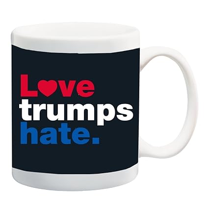 • The Love Trumps Hate 11 ounce Ceramic Coffee Mug Tea Cup by Debbie's Designs is a