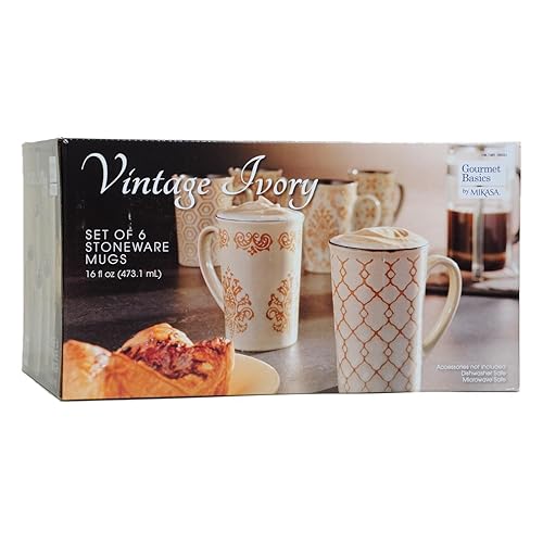 an essential choice for any warm beverage lover. The sturdy base, large handle and capacity, and thick, sturdy glass make it an excellent mug for everyday use. The classic shape is perfect for enjoying coffee, tea, or cocoa, and also makes a great gift. The versatile design lends itself not only to drinking but also to home decor. Whether you are sharing a cup of cocoa with a friend or growing your own herbs, Anchor Hocking’s CafĂ© Mug is sure to delight.the Gourmet Basics by Mikasa Set of Six Vintage Ivory Mugs The origins of the Unemployed Philosophers Guild are shrouded in mystery. Some accounts trace the Guild's birth to Athens in the latter half of the 4th century BCE. Allegedly, several lesser philosophers grew weary of the endless Socratic dialogue endemic in their trade and turned to crafting household implements and playthings. (Hence the assertions that Socrates quaffed his hemlock poison from a Guild-designed chalice, though vigorous debate surrounds the question of whether it was a "disappearing" chalice.)Others argue that the UPG dates from the High Middle Ages, when the Philosophers Guild entered the world of commerce by selling bawdy pamphlets to pilgrims facing long lines for the restroom. Business boomed until 1211 when Pope Innocent III condemned the publications. Not surprisingly, this led to increased sales, even as half our membership was burned at the stake.Gourmet Basics by Mikasa Set of Six Vintage Ivory Mugs is best for youSize:standard | Color:ceoc-14 Each mug has a unique design, but they are all Ivory, and very elegant. The inside is a dark mocha color. These are made from durable 'Stoneware', and they are microwave and dishwasher safe! What a great gift! Supplies are limited--buy now to be safe!