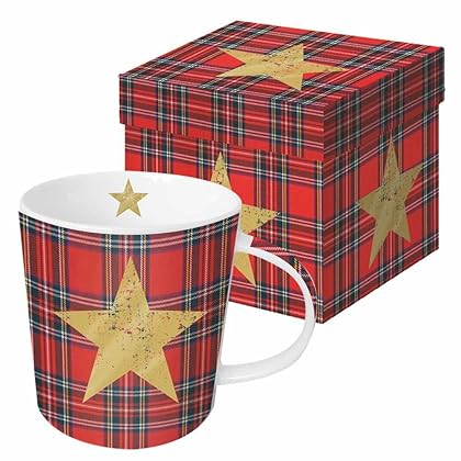 Paperproducts Design Gift Boxed Porcelain Mug, 13.5 oz, Tartan Plaid Star, Multicolor best Cups, Mugs & Saucers
