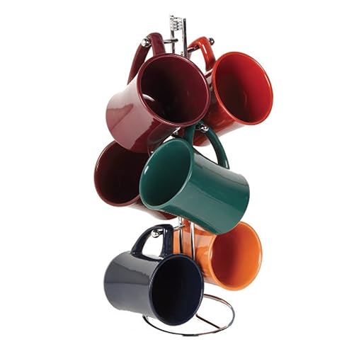 GIBSON EVERYDAY COLOR CONTOUR 7 PIECE COFFEE MUG SET WITH METAL RACK HOLDER is best for youCoffee set assorted Includes 6 - 12-ounces mugs and 1 metal mug rack - 6 assorted colors Dishwasher and microwave safe Material: stoneware Made with reactive glaze finishing technique