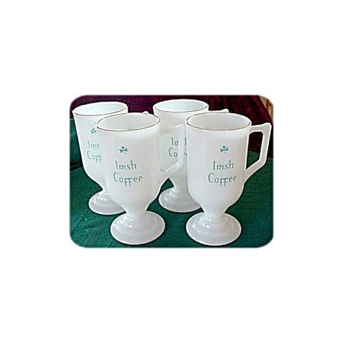 Vintage Milk Glass " Irish Coffee " Shamrock Pedestal Cups Mugs - Gold Trim - 4 Piece Set is best for youVintage Milk Glass ' Irish Coffee ' Shamrock Pedestal Cups Mugs - Gold Trim
