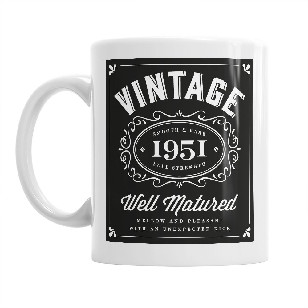 65th Birthday, 65th Birthday Gift, 65th Birthday Gifts For Men, 65th birthday Gifts For Women, 1951 Birthday, Vintage Bourbon 1951, Coffee Mug is best for you65th Birthday Coffee Mug, makes the perfect 65th birthday gift. Mainly Mugs is proud to offer our original and exclusive, vintage, 65th Birthday design on our quality 11oz, white ceramic mug.