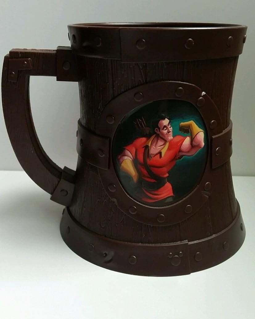 Disney Beauty and the Beast Gaston / Lefou Stein is best for youThis plastic stein measures 4 3/8' x 5' and features Gaston on one side and his sidekick Lefou on the other. Drink just like the best - Gaston!