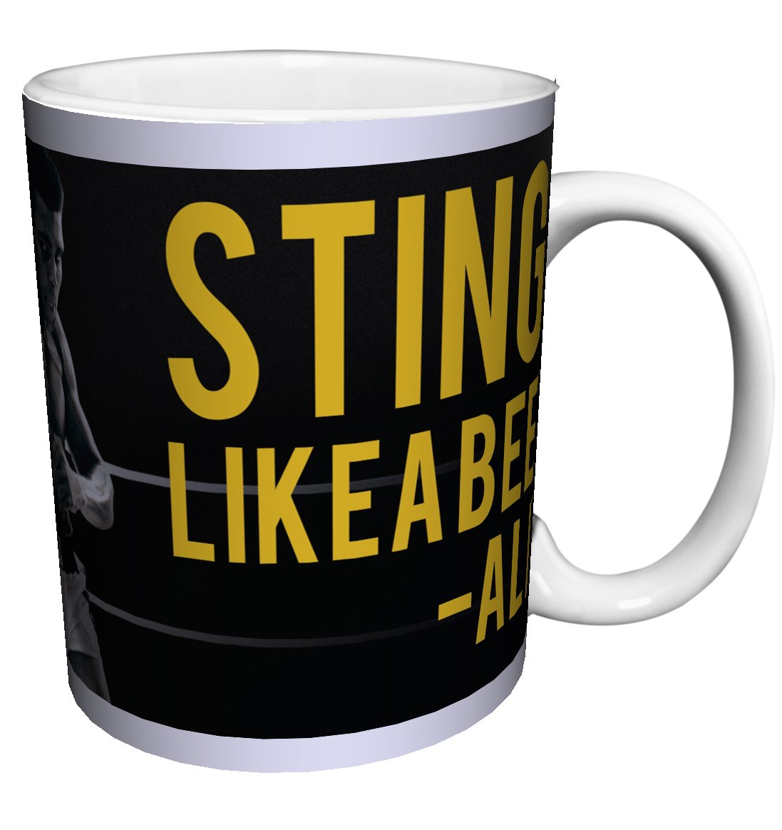 Muhammad Ali In Ring Float Quote Sports Boxing Icon Celebrity Quote Porcelain Gift Coffee (Tea, Cocoa) 11 Oz. Mug is best for youThis gift mug features an image of boxing legend Muhammad Ali, with his famous quote 'Float like a butterfly, sting like a bee.'.