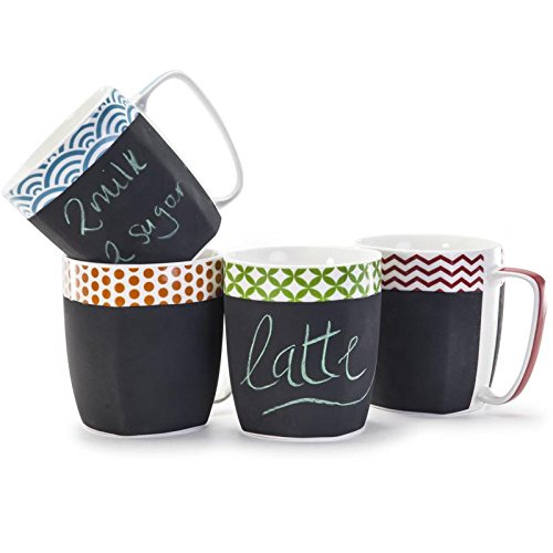 BIA Cordon Bleu "Chalkboard" 16 ounce Bone China Metallic Mugs - Assorted Color - Set of 4s best Cups, Mugs & Saucers