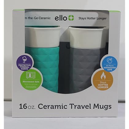 Ello Ogden BPA-Free Ceramic Travel Mug with Lid 2pk (2, Grey & Mint) is best for youPackage Quantity:2 | Color:Grey & Mint High-quality ceramic with a silicone boot that keeps your beverage hotter for longer. Great for home, work or on the go. Splash-proof slider lid allows you to drink directly from the ceramic. BPA, phthalates, PVC, lead and cadmium freelead and cadmium free