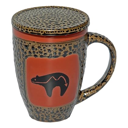 Heartline Bear Mug with Lid in Coral is best for youMicrowave and Dishwasher Safe! Lead Free! Mug with Lid in Heartline Bear Design, Ash Glaze and Coral Color. Stoneware Pottery. Lid can be Used as a Coaster.