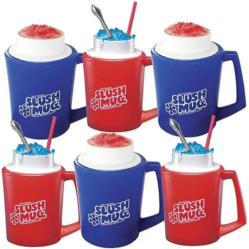 Slush Mugs Frozen Beverage Red Slushie Cups (Set of 6) - Amazing Slushees! is best for youSET OF 6 of our Slush Mugs!! Our mugs change almost any beverage into delicious, frozen desserts. Keep our Slush Mugs in freezer until you're ready, then pour in drinks and watch as they thicken into icy full-bodied slush in minutes! Your drink's flavor stays strong and undiluted since no ice is used! Never use with artificial sweeteners as they will not freeze properly. Use over and over again. Assorted colors, our choice please. Mugs are 10 oz. each. Hand wash.
