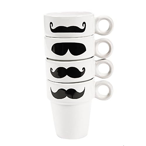 White Mustache Stacking Mugs Set of 4 best Cups, Mugs & Saucers