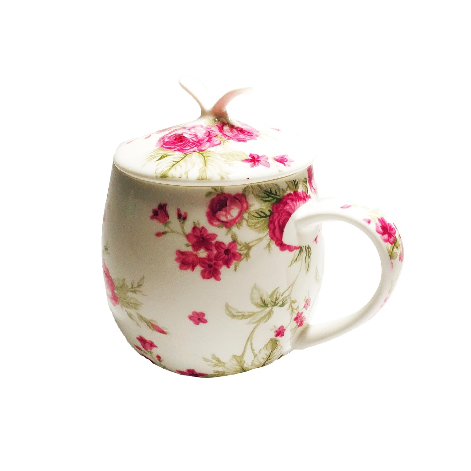ICON Fine Bone China Floral Mug with Lid, Chinese Herbaceous Peony, 15 oz best Cups, Mugs & Saucers