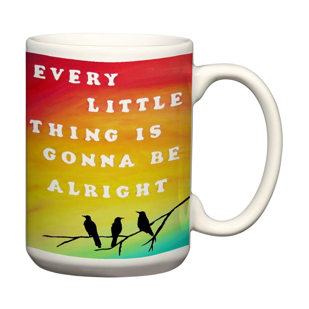 Every Little Thing is Gonna Be Alright Large Coffee Mug with Sayings Inspirational Quotes Three Little Birds Art 15 oz Coffee Mug is best for youThis listing is for a coffee mug including my original artwork. The mug is an over-sized 15 ounce size and made from ceramic. The artwork is professionally printed on the front and back of the mug using vibrant colors. The artwork features the lyrics from one of my favorite songs- Bob Marley's song Three Little Birds. It's a perfect gift for music lovers!
