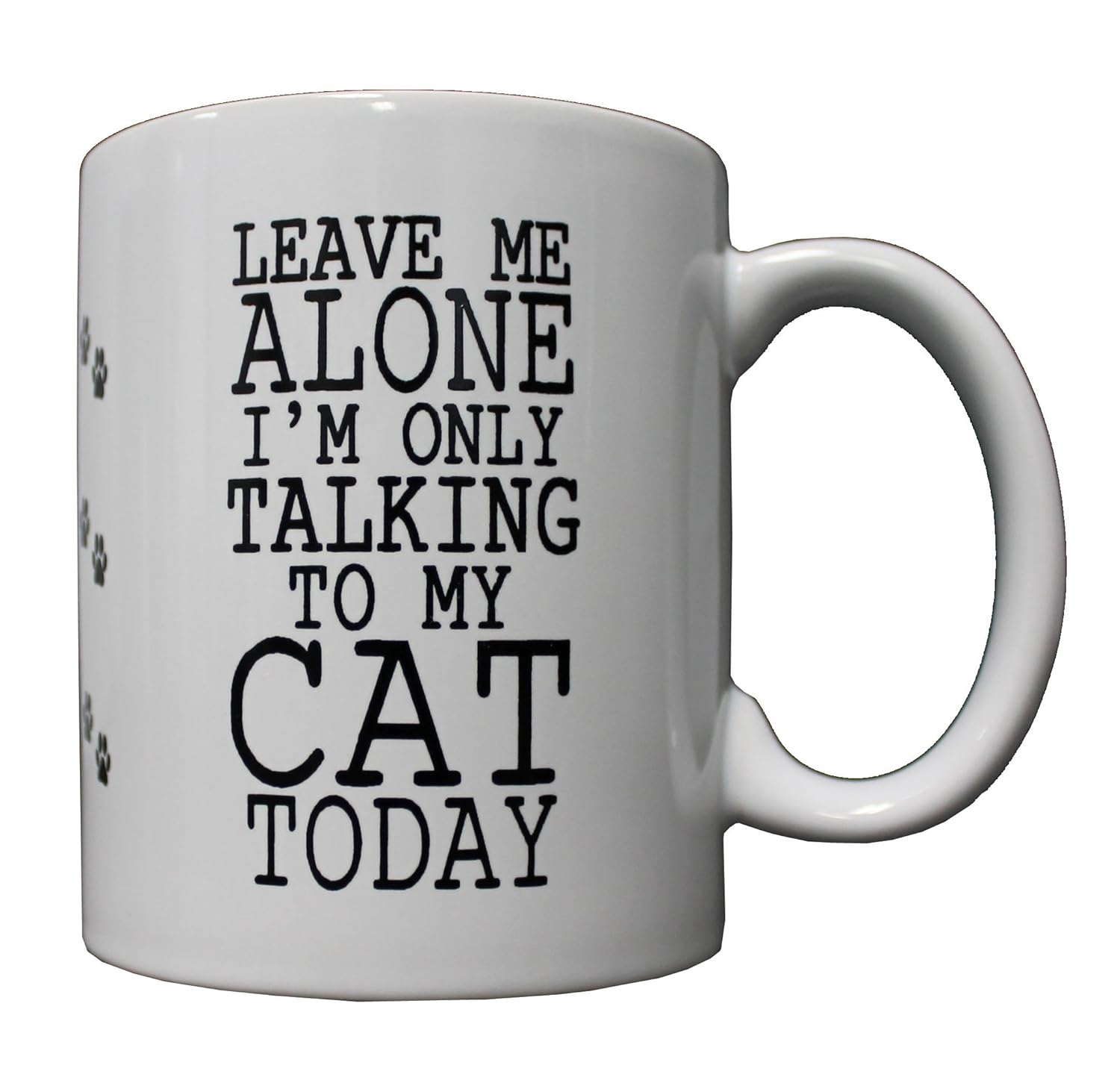 • The P&B Leave Me Alone Talking to My Cat Ceramic Coffee Mugs 11 oz is a