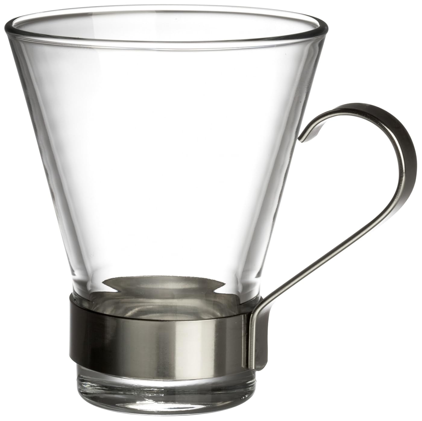 • The Bormioli Rocco Ypsilon Cappuccino Cup With Stainless Steel Handle, Set of 4, Gift Boxed, 22 cl - 7 1/2 oz is a
