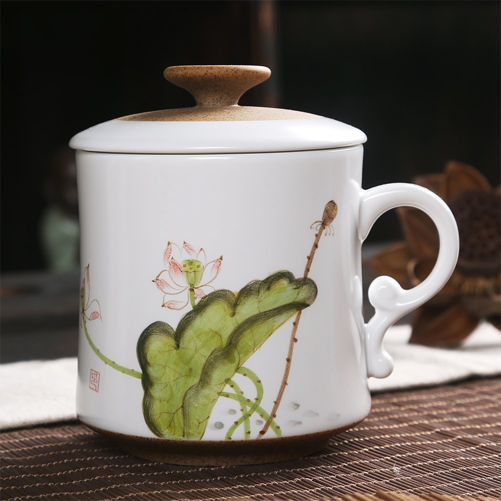 • The Zen Room Premium Tea Steeping Mug 12oz✪Handcrafted Porcelain Ceramic Tea Mug with infuser and Lid✪Hand Painted Lotus in Chinese Modern Stylish Design✪New Infuser Design is a